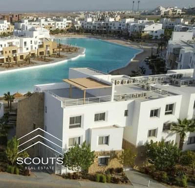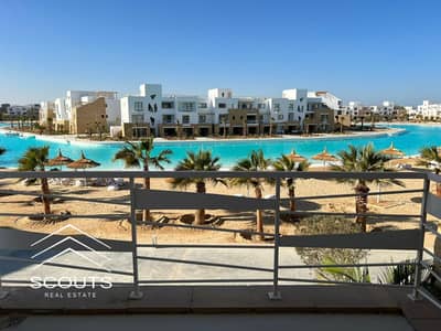Chalet for sale fully finished with air conditioning and kitchen first row to the lagoon ready for viewing in Swan Lake Village ElGouna