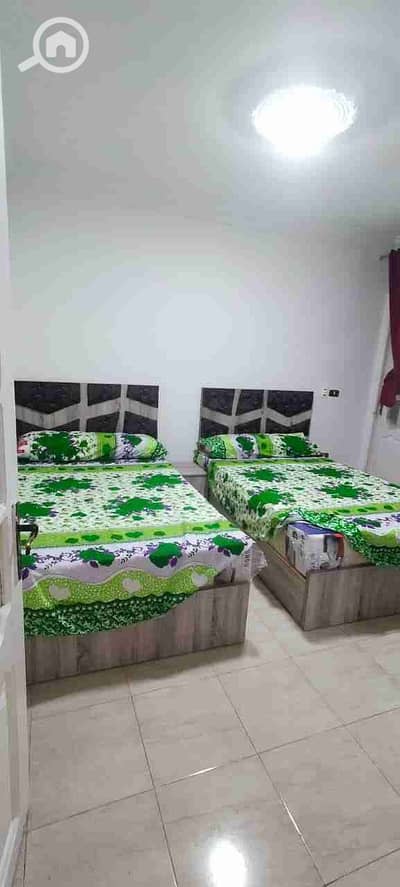 Furnished apartment for rent, five beds, first occupancy, monthly, long-term, or daily. Neighborhood 2, first block behind الحصري gas station. For contact, mobile number or WhatsApp today 1500, monthly 18.