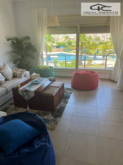 A seafront penthouse chalet with an open pool view for sale in Hacienda Bay - North Coast, in a prime location. Ultra-luxuriously finished with air conditioners, furniture, and appliances.