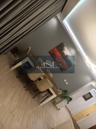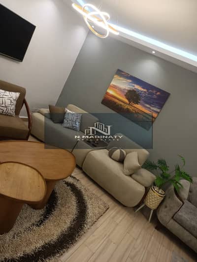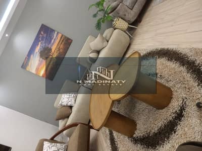 For rent: furnished apartment in Madinaty, 211 sqm in B1, wide garden view, modern finishing, steps away from services and transportation.
