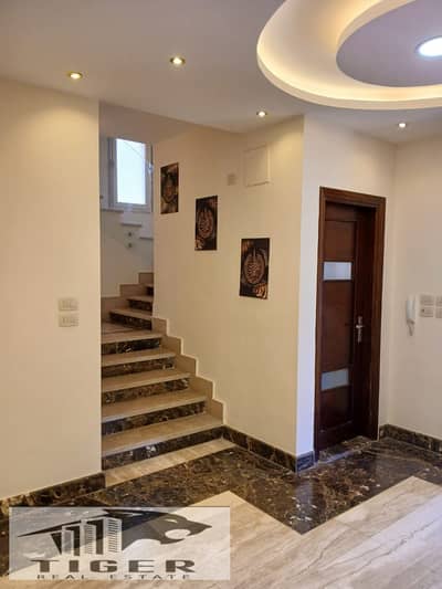 The villa consists of a large reception, kitchen, bathroom, and terrace on the ground floor, and the upper floor consists of 3 bedrooms, including a master bedroom and a bathroom serving two rooms, a living room, and a terrace, with a room and bathroom on the roof.