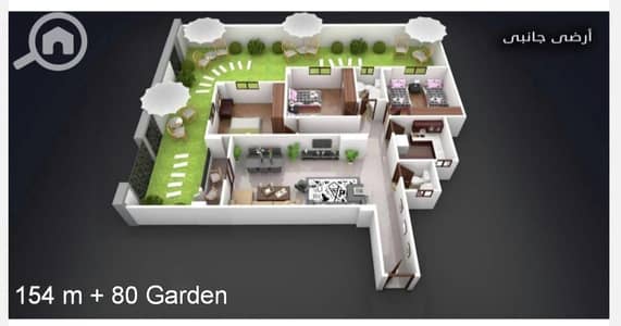 Apartment for sale in Beit Al-Watan, Fifth Settlement, directly on the 90th Street, with installment plan, ground floor with garden, 154m + 80m, view it now.