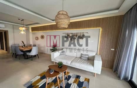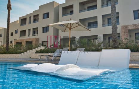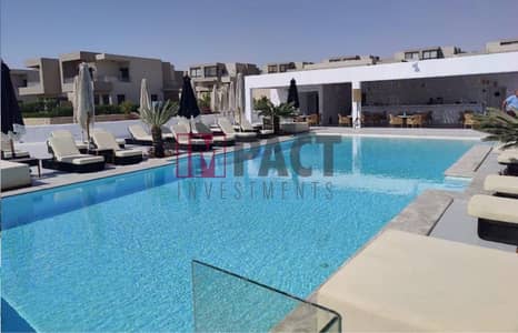 Sea view chalet for sale in Azha El Sokhna, fully finished to an ultra-luxury standard, with air conditioning and kitchen units.