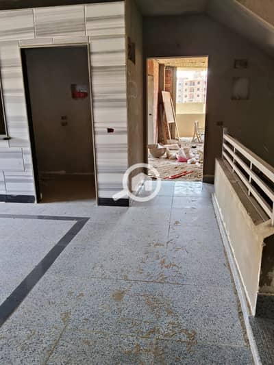 Prime location, northern expansions, Beit Al-Watan Extension, next to October Plaza, northern corner. Rooftop apartment, 140 m², 3 bedrooms, 2 bathrooms, share in the garage, elevator from the garage to the apartment. Delivery in 6 months, fourth-floor license fees paid. Currently, final finishing works underway. 50% down payment, 18-month installments.