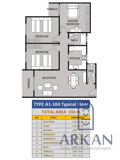 The apartment is 133 meters