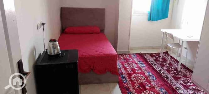It is approximately 12 minutes away from Nasr City, Maadi, the airport, and New Cairo. The place is a hostel and the accommodation is suitable for very small families or single individuals. The accommodation is suitable for engineers, petroleum company employees, doctors, university faculty members, bank employees, and those with high-end jobs only. The entire villa has the same layout, meaning it consists of studios next to each other. Each studio has a private bathroom, refrigerator, bed, wardrobe, chair, desk, television, and kettle for making tea. There is also a stove, microwave, fully automatic washing machine, and dryer. It is suitable for a board chairman, project managers, or a small family. The villa has a PlayStation, a pool table, a ping pong table, an espresso machine for making coffee and all beverages, as well as a beautiful garden seating area for enjoying drinks. There is also a housekeeping service, cleaning, and Wi-Fi internet.