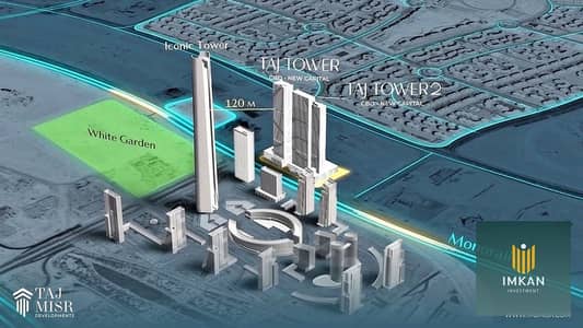 30m² administrative office with a direct Iconic Tower view for sale in Taj Tower (G+58) – New Capital.