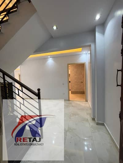 Duplex for rent, ultra-super lux, first residence with kitchen, air conditioning, heaters, garden view, and swimming pool in Rimas City Compound, next to Waterway and Al Jazzy, and steps away from Mohamed Naguib Axis, First Settlement.
