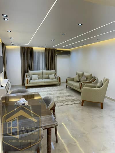 Ground floor apartment with garden, at a special price, furnished with hotel-style furniture and high-end finishes, in the best location in Al Rehab C