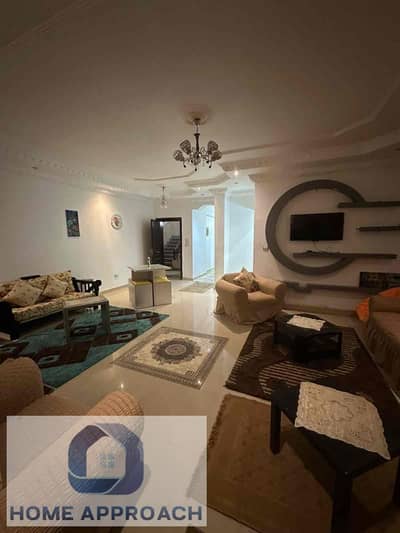 Two-bedroom furnished apartment for rent in Al-Banafsaj 4, next to Al-Baraka Mall and Tajan Al-Azhariya School, and close to Al-Rehab.