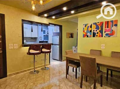 For rent in Madinaty, a hotel-furnished apartment of 108 square meters on the ground floor with a garden.