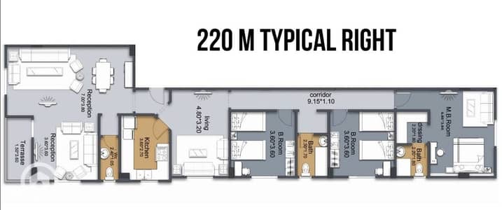In the first neighborhood of Beit Al-Watan, piece f88, own a 220 square meter unit with a panorama, delivery in 8 months with excellent internal division.