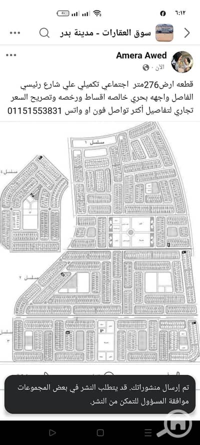 Residential Plot for Sale – 276 sqm in the Complementary Social Housing Area, Badr City