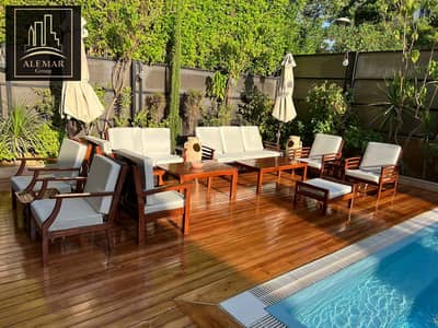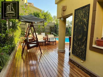 Villa for sale in Madinaty Model X with private swimming pool, garden view, high-end finishes, sold furnished or unfurnished.