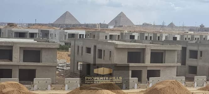 "Foratown House for sale on the desert road with a view of the Pyramids in Al Hadba compound"