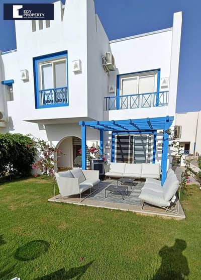 Twin House Corner for Sale Fully FInished & Brand New Furnished First Use Direct on Lagoon with private Garden in Mountain View North Coast