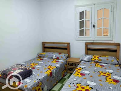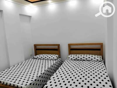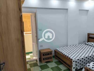 Furnished high luxury apartment for annual rent, suitable for a family or company, with 3 bedrooms, two-piece reception, kitchen, bathroom, located on the first upper floor in Alexandria, Al-Ajami, Kilometre 21, October Entrance, in a very distinguished location.