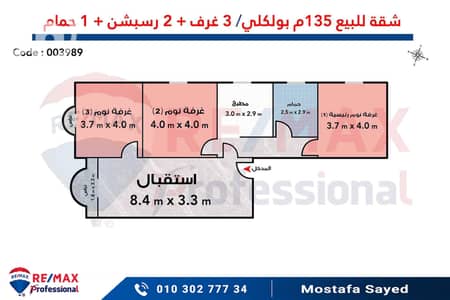 Apartment for sale, 135 sqm, Bolkly (steps from Abu Qir Street) - 3,250,000 EGP cash - Agent: Mostafa Sayed