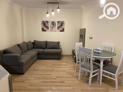 Furnished studio apartment for rent in Al Rehab, with hotel-style finishes.