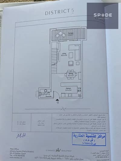 Loft apartment for sale in Compound District 5 with a built-up area of 184 m² on the first floor, overlooking landscaped views. The apartment is semi-finished and includes 2 bedrooms, a living room, and 3 bathrooms.