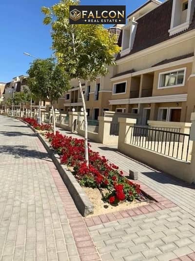 Townhouse for sale ready to move with private garden, with a Prime view, on Central Park direct on Suez Road, in Sarai Compound, in front of Madinaty