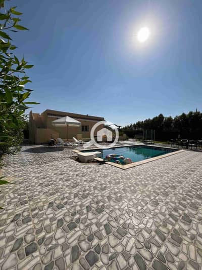 Chalet for sale in a very distinguished location in the European countryside on the Cairo-Alexandria desert road, K 58, on a half-acre of fully finished land with super lux finishing, a swimming pool, three bedrooms, three bathrooms, a large reception area, and a kitchen. It has landscaping and a garden with a mix of fruit-bearing and diverse trees, a grill, surrounded by a wall and a gate, complete privacy for those seeking tranquility and privacy, very close to all services, the main axis, Al Ahly Club Sheikh Zayed branch, Sphinx International Airport, the electric train station, and Hyper Al-Salamaniya.