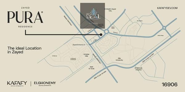 Located in Sheikh Zayed City, the project enjoys direct access to two main roads: