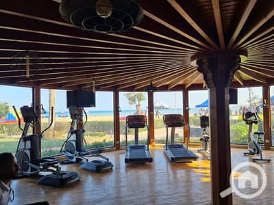 Ready-to-view chalet for sale, first row on the sea, 110 sqm, 2 bedrooms, ground floor with garden, located in the heart of Ain Sokhna – Blue Blue.