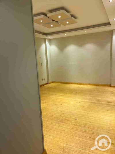Apartment for rent in the Al Yasmeen Compound, Sheikh Zayed, semi-furnished with kitchen cabinets, water heaters, internet, and natural gas. It is divided into 3 bedrooms, 3 bathrooms, a kitchen, a reception area, and a balcony.