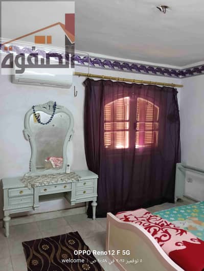 For rent: a furnished apartment consisting of two bedrooms, a reception, a bathroom, and a kitchen, located on the tenth floor. It has three working elevators, internet connection, natural gas, and air conditioning in the room. The apartment is located in the new Awqaf buildings in Arab Maadi, in a service area, and is an excellent tower close to the Arab bus station. It has three balconies and the apartment is completely unscathed. For inquiries, call / ##() or ##()