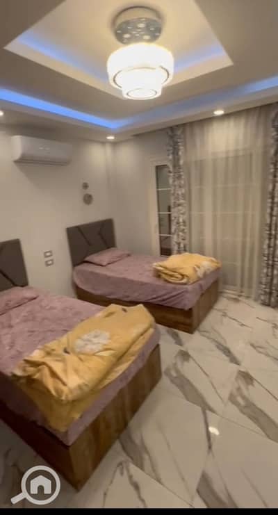 Apartment in Madinaty, Phase 11, Model (90), 133 sq m, south-facing, overlooking parking, includes 3 bedrooms, 2 bathrooms, 2 balconies, first floor, luxury finishing, immediate occupancy, for sale cash 6,000,000 EGP, with 4 air conditioners and a kitchen.