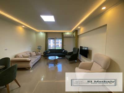 Furnished apartment for rent in Al Rehab 2, 99 sq m, second floor with 2 elevators, in a prime location behind Avenue Mall.