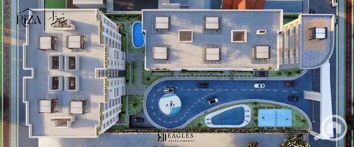 A 348,000 down payment is required for a rooftop apartment next to Al Ahly Club for sale in Sheikh Zayed. It includes a private garage, free access to the club, two bedrooms, a two-piece reception area, and installments up to 10 years.