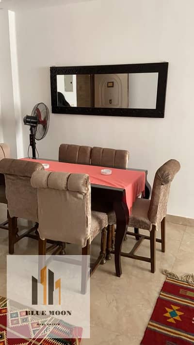 Furnished apartment for rent, 120 square meters, fully furnished for families, available for daily or monthly rental, fourth floor with elevator, off Abd El-Hamid Bedouy Street, in front of the squash courts, 2 rooms, reception, bathroom, kitchen, super luxury finishing, daily price 1700, monthly price 35,000.