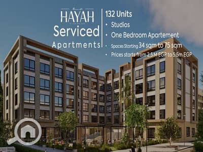 Own your apartment now in Hayah Residence, October, directly on Al Wahat Road, next to MSA University and Carrefour.