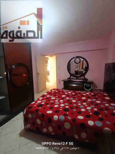 For rent: A furnished apartment consisting of two bedrooms, a reception area, a bathroom, and a kitchen on the ninth floor. There are 3 working elevators, internet service available, located in the new Awqaf Towers in Arab Maadi, in a service area. An excellent tower close to the Arab Bus Station, just 5 minutes away. 24-hour services with 2 guards for the building, and 2 balconies with 3 beds. The apartment is completely intact.