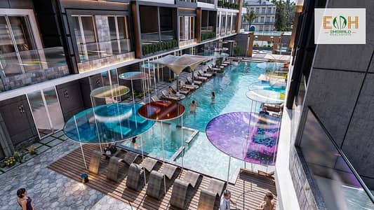 A 55-square-meter studio apartment for sale in a luxurious resort in Hurghada, with 24-hour security and a strategic location.
