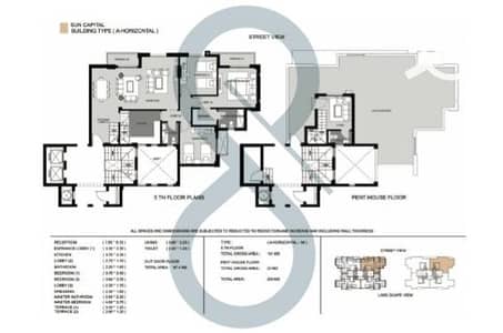 7th Floor (Penthouse Level): Room 22 m² + Roof 121 m²