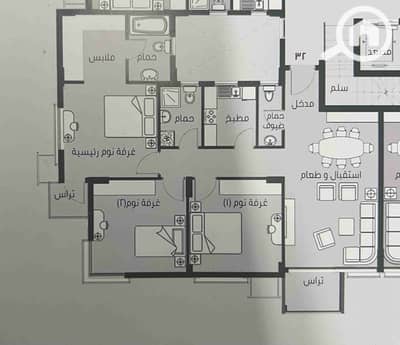 The unit features an excellent internal layout with 3 bedrooms , 3 bathrooms (including a master bathroom), a kitchen, a reception area, and 2 terraces.