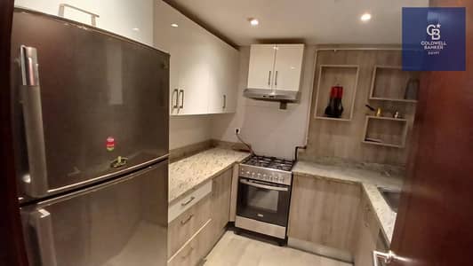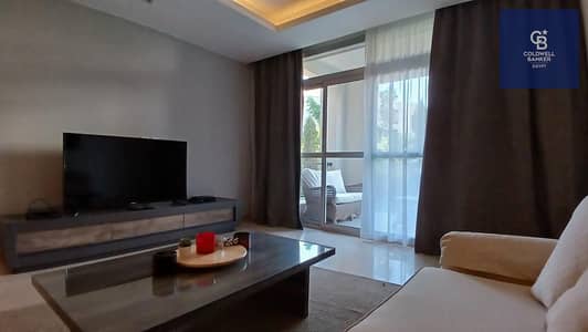 Ground floor apartment with a large garden available for sale in Cairo Festival City, complete with kitchen and air conditioning.