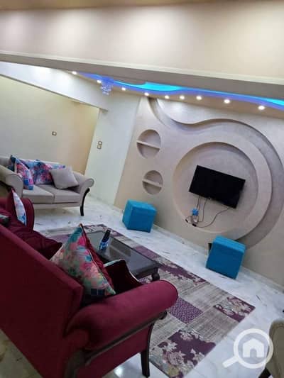 Furnished apartment for rent in Al Fursan Compound. Super deluxe finishing. The apartment consists of two bedrooms, a reception area, two bathrooms, and a kitchen. Fully air-conditioned. Modern furnishings in excellent condition. The compound offers comprehensive services, 24-hour security, and surveillance. Monthly rent is 20,000 EGP. For inquiries, please call .