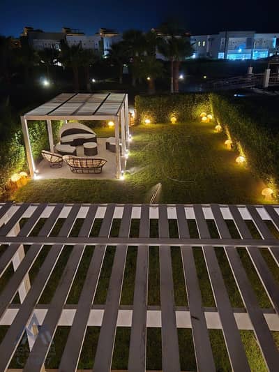 Luxurious Twin Villa in Amwaj Resort, developed by Ahly Sabbour, featuring a built-up area of 296 sqm and a land area of 390 sqm. The villa consists of ground and first floors with no roof, and comes fully finished, air-conditioned, and fully furnished.