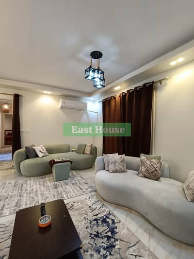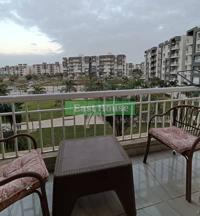 For rent, furnished in Madinaty, 3-room apartment in B12, modern furnishings, next to all services, wide garden view