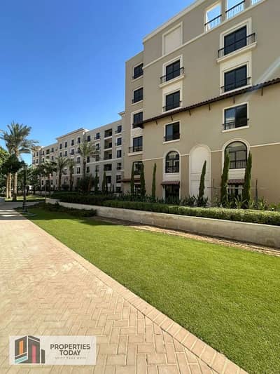 For Rent | Apartment in Village West Sheikh Zayed with installed ACs and unfurnished kitchen, located in a premium compound offering green spaces.