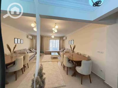 Jannah 2 Sheikh Zayed Compound furnished apartment for rent 140m fully furnished and fully air-conditioned, 3 bedrooms, 2 bathrooms, kitchen, reception, and balcony. Internet is available.