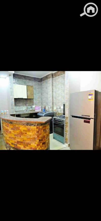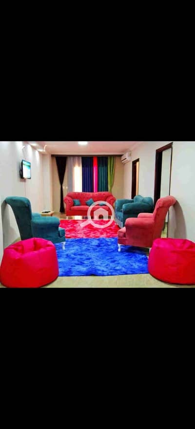 Apartment for rent in Al Mandarah, super luxe with two bedrooms, a reception area, a kitchen, and a super luxe bathroom.
