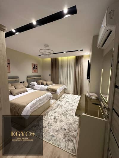 Ready-to-move-in super-lux finished apartment with furniture and air conditioning at the lowest price in the heart of New Cairo's Fifth Settlement, with installments over the longest payment period.