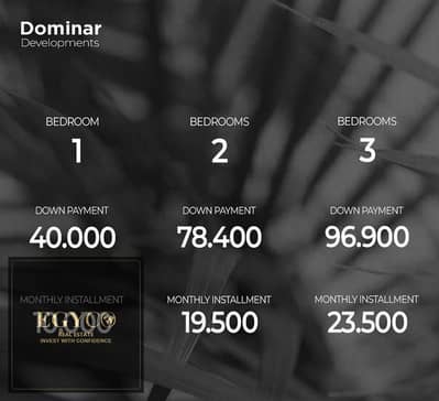 The First offering price for the project: fully finished, at the lowest price per meter, with the lowest down payment, and installments over 12 years.