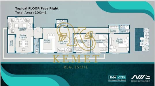 A 200 sqm apartment for sale, second floor, semi-finished, delivery in 2026, with payment plans up to 5 years, located in Beit Al Watan – 5th District