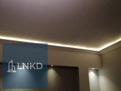 Details: 220 sqm, 3 bedrooms (1 master), 2 bathrooms, kitchen, 3-piece reception, terrace, ultra superlux finish, 1st floor, garden view, double-height ceilings, porcelain and marble floors, gypsum board ceilings, painted with Uten, armored door, Duravit bathroom fixtures, natural gas, share of land